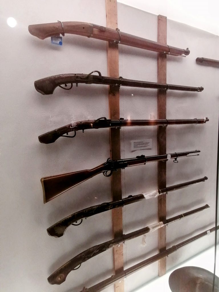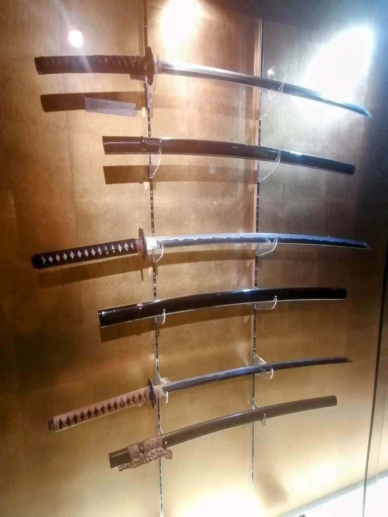 Die Ninja dagegen agierten im vormodernen Japan als geheime Agenten und Spione. Im Gegensatz zu den Samurai, die offen und zu mindestens theoretisch ehrenhaft kämpften, operierten die Ninja meist im Verborgenen. Ihre Hauptaufgaben umfassten Beschattung, Sabotage, Aufklärung und Attentate. Besonders im 15. und 16. Jahrhundert, einer Epoche ständiger Kriege, waren sie für rivalisierende Fürsten von großer Bedeutung. Das Museum zeigte eine ganze Reihe an Waffen, die von den Ninja verwendet wurden. Da diese aber stets im Verborgenen agierten, sind die Ausstellungsstücke natürlich nicht so imposant und atemberaubend wie die Ausrüstung der Samurai.