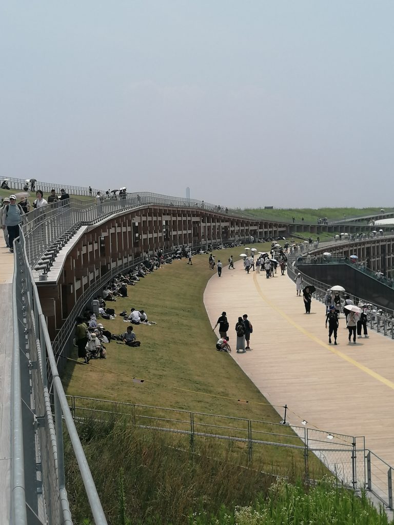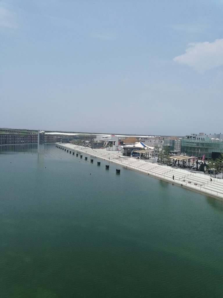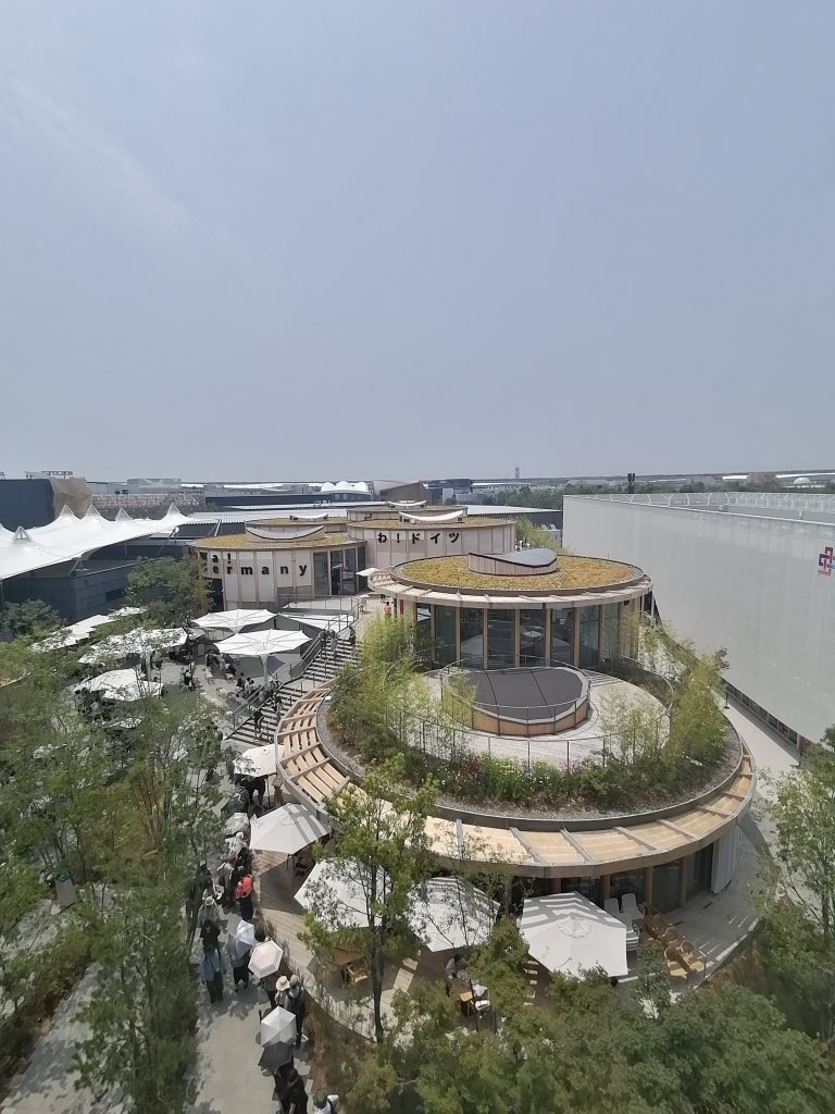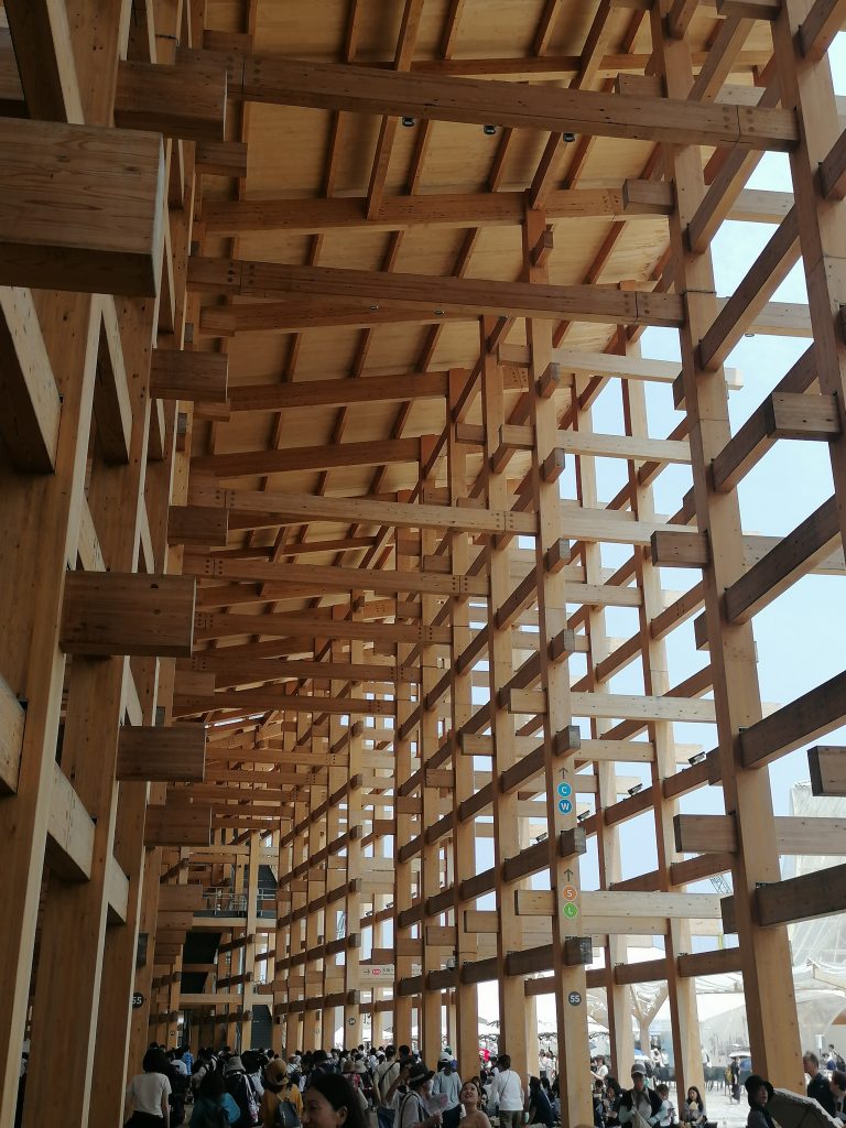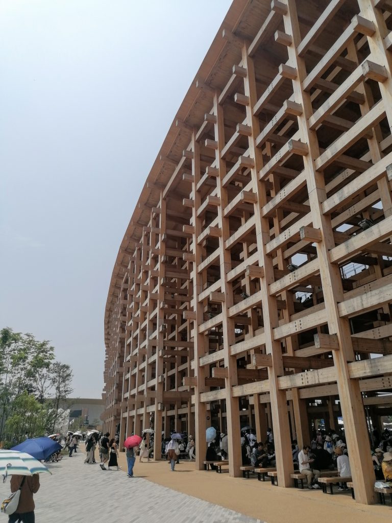 Die Expo befindet sich auf einer künstlich aufgeschütteten Insel am Stadtrand und zeichnet sich durch einen Ringbau aus, der das gesamte Gelände umschließt. Dieser sogenannte „Grand Ring“ ist eine 20m hohe, begehbare Holzstruktur mit 675m Durchmesser und ca. 2km Umfang. Zu Beginn eines Besuchs macht es Sinn mit der Rolltreppe auf das Dach des „Grand Ring“ zu fahren, um sich einen ersten Überblick zu verschaffen. Leider hat man der Expo aber angemerkt, dass ihre Planung mit der heißen Nadel gestrickt wurde. Fast nirgendwo gab es Schatten, Essensstände lagen weit entfernt voneinander und an den Wasserspendern bildeten sich ewige Schlangen. Generell hatte man den Eindruck, dass die Anlage nicht für die Menschenmassen ausgerichtet war, die zu Besuch kamen. Manche Länderpavillons waren so überfüllt, dass selbst die meterlangen Schlagen vor den Eingangstoren „geschlossen“ wurden, weil es keinen Platz mehr gab sich anzustellen, ohne den Verkehr zu behindern. Durstig und genervt entschied ich mich deshalb dazu keinen der großen Pavillons zu besichtigen, sondern vergnügte mich in den Ausstellungshallen der Entwicklungsländer.