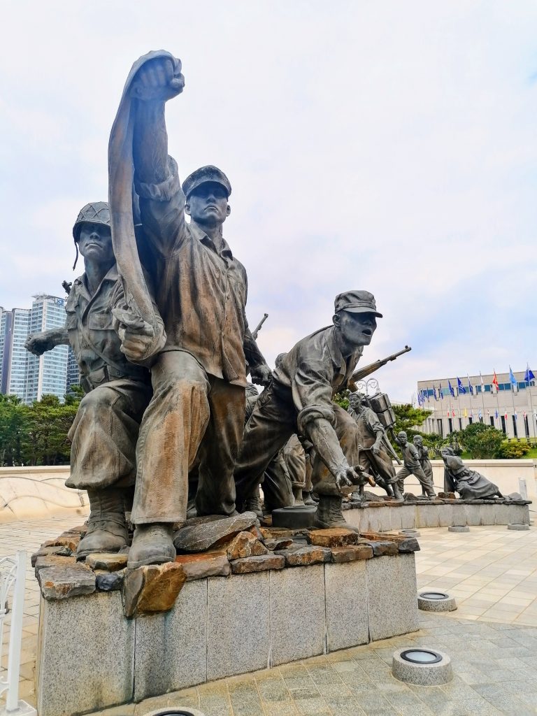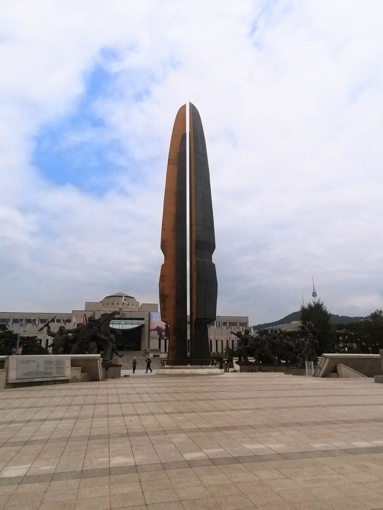 Wie sich die Situation des „Nicht-Kriegs“ im Vergleich zum Frieden anfühlt, lässt sich vielleicht in der Hauptstadt Südkoreas ein klein wenig besser nachvollziehen. Nur 50 bis 60 km von der nordkoreanischen Grenze entfernt begegnet man in Seoul regelmäßig Soldaten auf der Straße oder findet am Hauptbahnhof eine eigene Lounge für Militärangehörige. Die Wehrpflicht dauert immer noch 18-22 Monate und dementsprechend zackig sehen viele junge Männer aus. Vielleicht ist mein erster Eindruck aber auch dadurch geprägt, dass ich gleich am ersten Tag das Militärmuseum bzw. die Koreanische Kriegsgedenkstätte besucht habe.