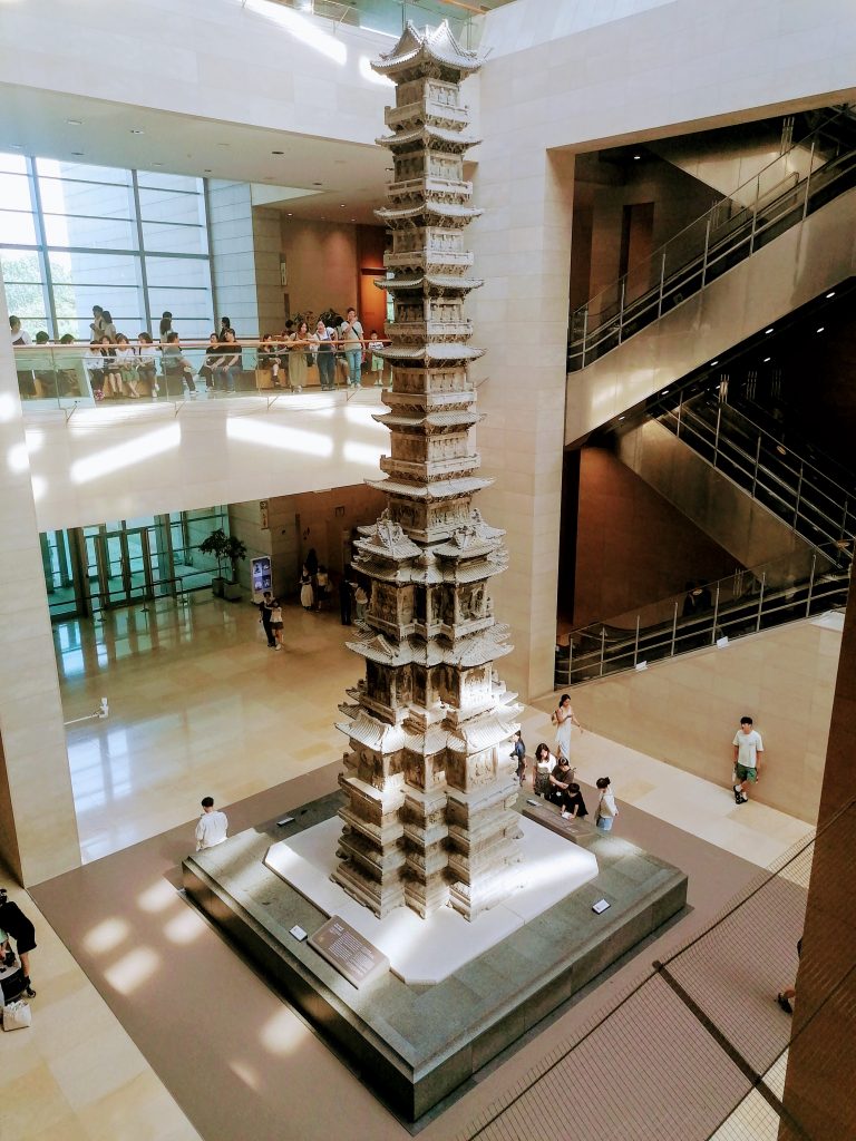 In einer der Haupthallen befindet sich eine zehnstöckige Pagode aus dem Kloster Gyeongcheonsa, wo sie 1348 errichtet wurde. 1907 wurde sie illegalerweise von einem korrupten japanischen Beamten nach Japan geschmuggelt, aber schon 1918 wieder zurückgegeben. 1960 wurde sie wieder aufgebaut, aber aufgrund des sauren Regens und anderer Umwelteinflüsse begann die Pagode so stark zu verwittern, dass man sich 1995 entschied sie wieder abzubauen und einzulagern. Erst zehn Jahre später, mit der Eröffnung des neuen Nationalmuseums, konnte man die Pagode geschützt in einem Innenraum errichten.