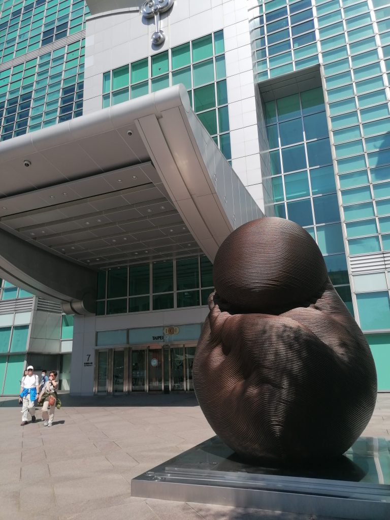 Endlich habe ich es auch auf den berühmten 101-Tower geschafft. Bei seiner Fertigstellung im Jahr 2004 war es mit seinen 508m das höchste Gebäude der Welt. Den Rekord konnte der Turm bis 2009 halten, bis er vom Burj Khalifa überholt wurde. Bis 2015 dagegen verfügte der Turm über die schnellsten Aufzüge der Welt (ca. 60km/h). Vor dem Haupteingang befindet sich dementsprechend eine Skulptur des taiwanischen Künstlers Kang Muxiang, der die Drahtseile der Aufzüge zu abstrakten Gebilden zusammengeschweißt hat.