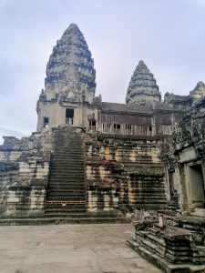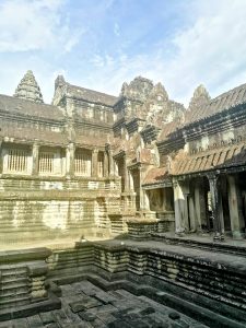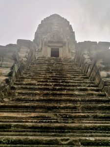 Bei tropischem Klima und gleißendem Sonnenlicht wird der Aufstieg zur höchsten Ebene von Angkor Wat selbst zu einer kleinen Heldenreise. Auf der zweiten Ebene begegnen einem zahlreiche Buddhastatuen, da Angkor Wat im 14. oder 15. Jahrhundert zu einem buddhistischen Tempel umfunktioniert wurde.