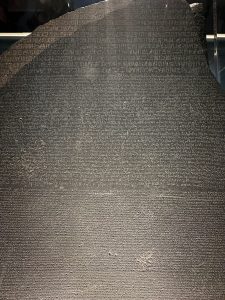 Ein weiteres Highlight der Sammlung ist der aus Memphis stammende Rosetta Stone von 196 v. Chr. Von einem der Nachfolger Alexander des Großen in Auftrag gegeben, ist das Dekret in drei verschiedenen Sprachen verfasst. In altägyptischen Hieroglyphen, in der ägyptischen Gebrauchsschrift, dem Demotischen und in Altgriechisch. Der Fund war von zentraler Bedeutung bei der Entschlüsselung der Hieroglyphen und gelangte über die Ägyptenfeldzüge Napoleons nach Großbritannien.