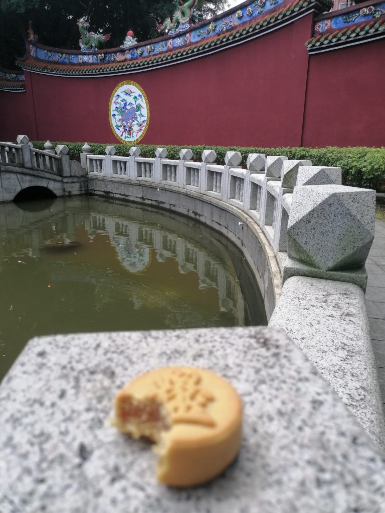 Beim Eintritt in den Konfuziustempel bekamen wir einen kleinen Ananaskuchen überreicht. Das Fabeltier im Hintergrund des dritten Bildes ist ein Qilin, ein chinesisches Einhorn, welches der Sage nach immer dann auftaucht, wenn ein weiser Herrscher die Macht übernimmt.