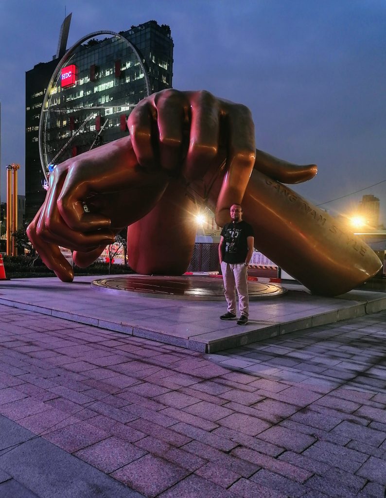 Als Psy 2012 mit „Gangnam Style“ in den Clubs hoch und runter gespielt wurde, war ich gerade zum ersten Mal in China. Der Song lief damals in jeder Bar war und war wohl zeitweilig das meistgeklickte Video auf YouTube. Trotz des Hypes hätte ich mir damals nicht vorstellen können, dass man dreizehn Jahre später ein riesiges Monument mit der ikonischen Tanzgeste errichten wird.